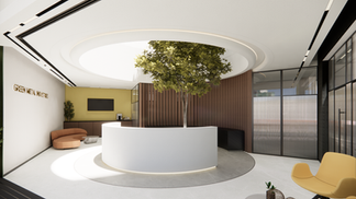 The interiors of Green Metal follow a neutral, elegant palette dominated by clean whites, layered with accents of warm greys, muted greens, and dark wood finishes. This thoughtful combination creates a calm, professional atmosphere that feels both modern and timeless.A defining interior element is the play of glass partitions. The use of fluted glass alongside plain panels adds both texture and transparency - offering visual openness without compromising privacy. Back-painted glass surfaces appear in select areas, reflecting light and reinforcing a sense of quiet luxury.
